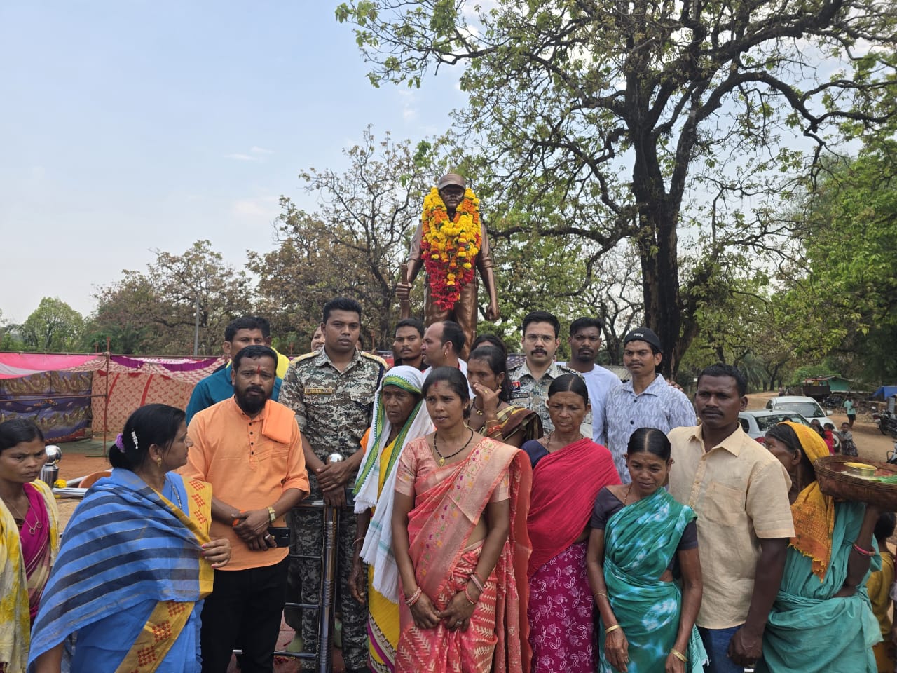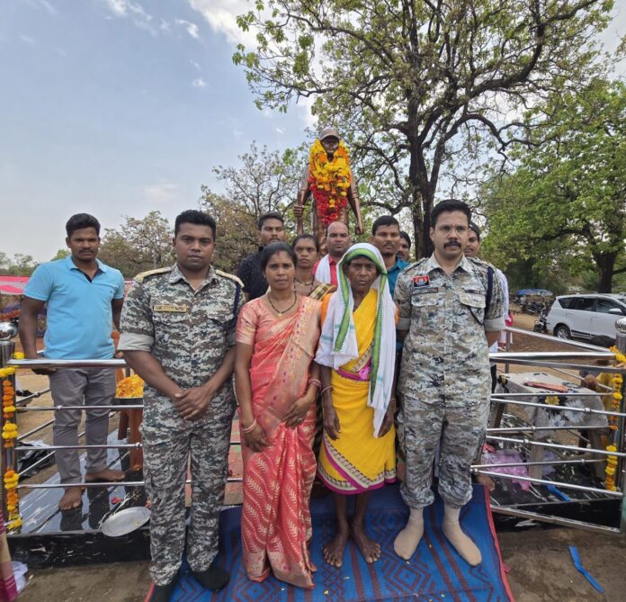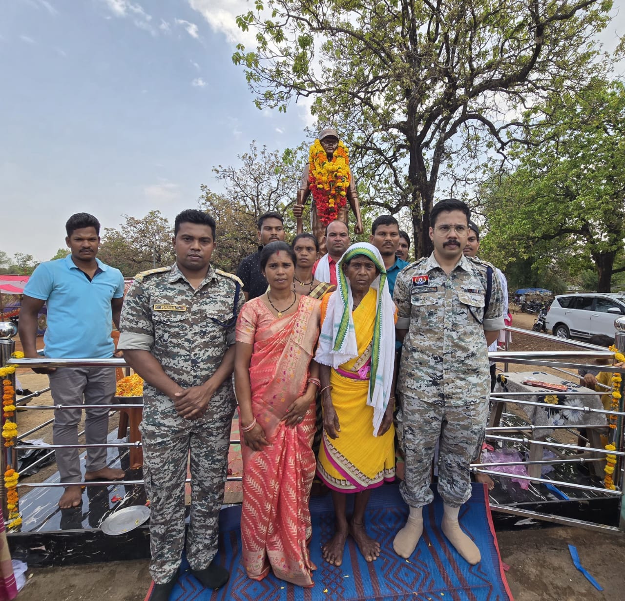 कावड़गांव में बीजापुर नक्सली हमले में शहीद पंडरु पोयाम की आदमकद प्रतिमा का किया गया,अनावरण, दंतेवाड़ा पुलिस अधीक्षक गौरव राय रहे मौजूद