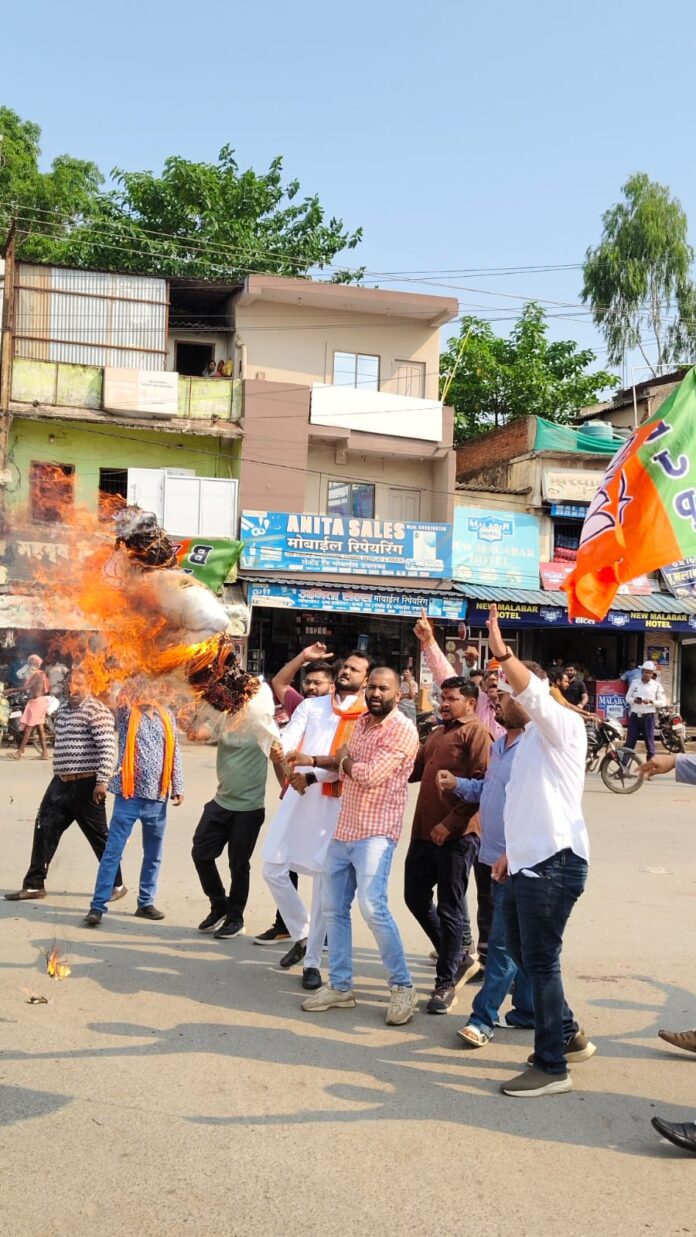 भारतीय जनता युवा मोर्चा के आह्वान पर भाजपा जिला कार्यालय में भाजपा कार्यकर्ता भारी संख्या में एकत्र हुये। जहाँ से अपरान्ह 3 बजे भाजपा जिला अध्यक्ष वेदप्रकाश पाण्डेय व भाजयुमो जिला अध्यक्ष अविनाश श्रीवास्तव के नेतृत्व में भारी संख्या में भाजपा कार्यकर्ता बैनर, पोस्टर, झण्डे के साथ कांग्रेस भवन का घेराव करने निकले। गुरु गोविंद सिंह चौराहे से गीदम रोड होकर कांग्रेस भवन की ओर कूच कर रहे भाजपा कार्यकर्ताओं को पुलिस ने महेन्द्र कर्मा बंगले के पास बैरिकेटिंग लगा कर रोकने का प्रयास किया। नारेबाजी करते हुये भाजपा कार्यकर्ताओं ने बेरिकेट्स को तोड़कर कांग्रेस भवन के ठीक सामने पहुँच गये, जहाँ भारी संख्या में तैनात पुलिस जवानों ने भाजपा कार्यकर्ताओं को आगे बढ़ने रोका। कांग्रेस के खिलाफ नारेबाजी करते हुये भाजपा कार्यकर्ताओं ने कांग्रेस भवन के सामने ही सोनिया गाँधी व राहुल गाँधी का पुतला फूंका और करीब एक घंटे तक कांग्रेस भवन का घेराव करने डटे रहे।