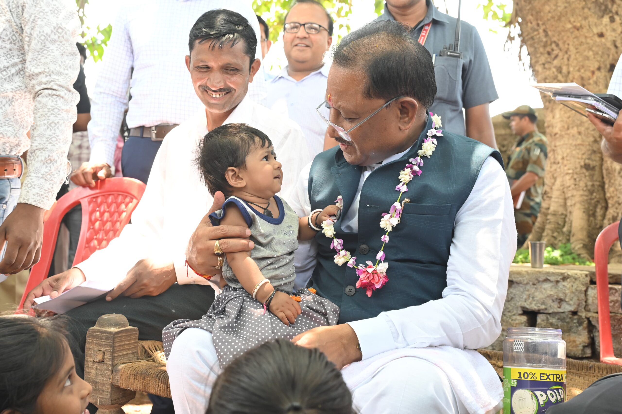 मुख्यमंत्री ने बरगद की छांव में खाट पर बैठ जाना ग्रामीणों का हाल-चाल, विद्युत सब स्टेशन, हायर सेकंडरी स्कूल भवन और प्राचीन मंदिर के सौंदर्यीकरण की घोषणा
