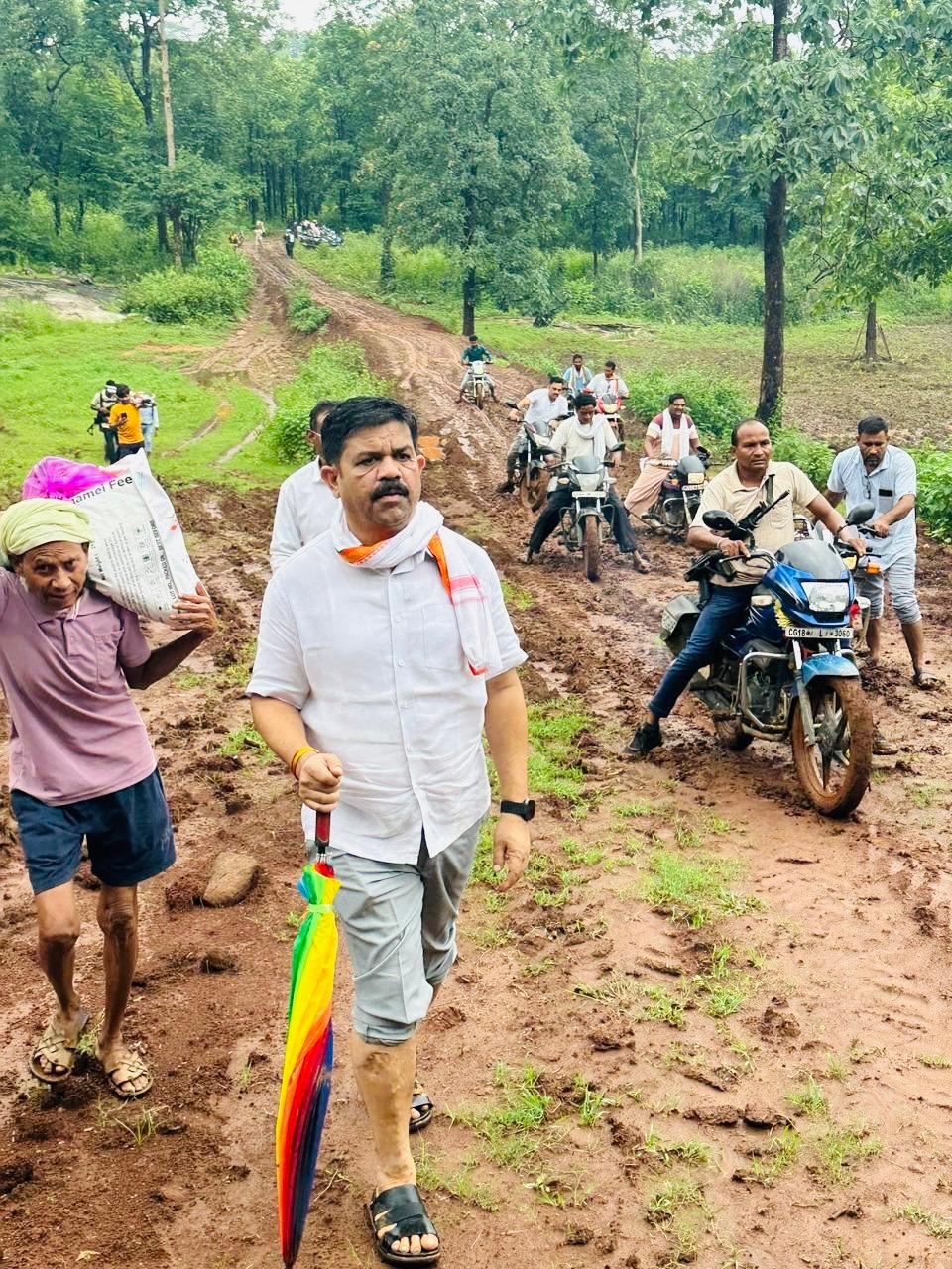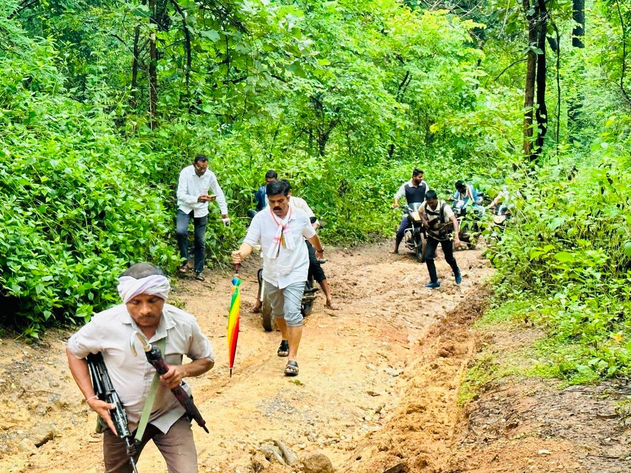 मुर्गेश शेट्टी,बीजापुर, 03/07/2025/बीजापुर के विधायक विक्रम मंडावी गुरुवार को भैरमगढ़ ब्लॉक के अतिसंवेदनशील गांव हल्लूर पहुंचे वे हल्लूर गांव नदी और नाले पार कर पैदल चलकर पहुंचे हैं विधायक के हल्लूर गांव पहुंचने पर उत्साह और उमंग का अनूठा संगम देखने को मिला।गांव पहुंचने के बाद ग्रामीणों ने गर्मजोशी से क्षेत्रीय विधायक विक्रम मंडावी का स्वागत सत्कार करते के उपरांत विधायक ने ग्रामीणों के साथ नवनिर्मित स्कूल भवन का फीता काटकर लोकार्पण किया और शाला प्रवेशोत्सव के रंगारंग आयोजन में ग्रामीणों के साथ कंधे से कंधा मिलाकर हिस्सा लिया। इस अवसर पर स्कूल परिसर बच्चों की हंसी, अभिभावकों की उम्मीदों और ग्रामीणों के जोश से गूंज उठा, जिसने इस पल को अविस्मरणीय बना दिया। इस दौरान विधायक विक्रम मंडावी ने स्कूली बच्चों को कापी, किताब, पेन और स्कूल ड्रेस इत्यादि वितरित किया वहीं दूसरी ओर विधायक ने ग्रामीणों को छाता भी वितरित किए हैं।