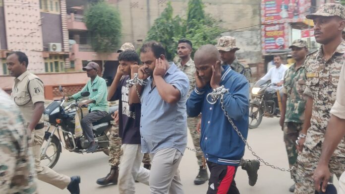 जगदलपुर। अपराधियों में कानून का भय पैदा करने आज कोतवाली पुलिस ने नगर में अलग अलग अपराधों को अंजाम देने वाले 3 आरोपियों की कोतवाली थाने से नगर में परेड निकाली ।इस दौरान अपराधियों ने अपने कान पकड़े हुए थे और पुलिस हमारा बाप अब से अपराध नहीं करेंगे का नारा लगा रहे थे।
